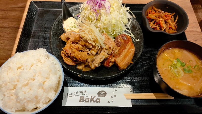 ロウリュと合わせて3セットの後は、お腹も生姜で満たしましょうと1階にある生姜焼き専門店へ