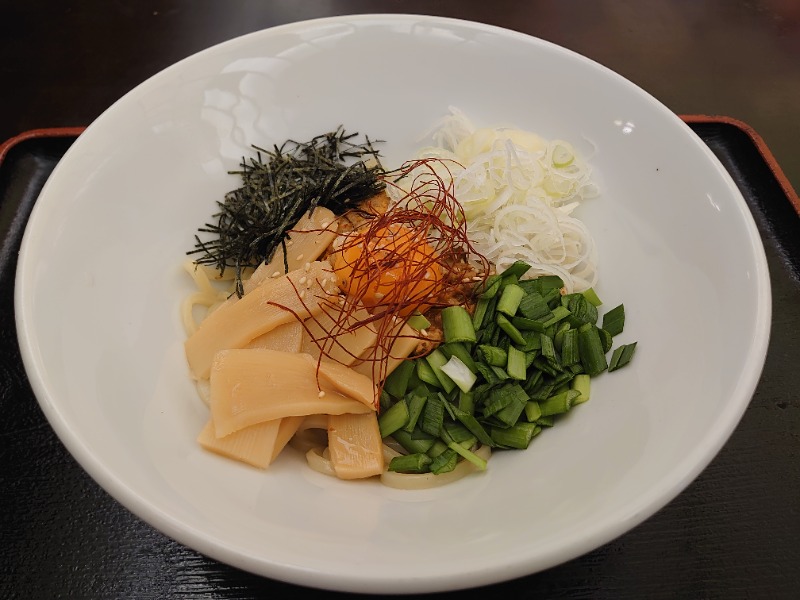 上の具材と下の麺とタレを混ぜ合わせていただきます😋
