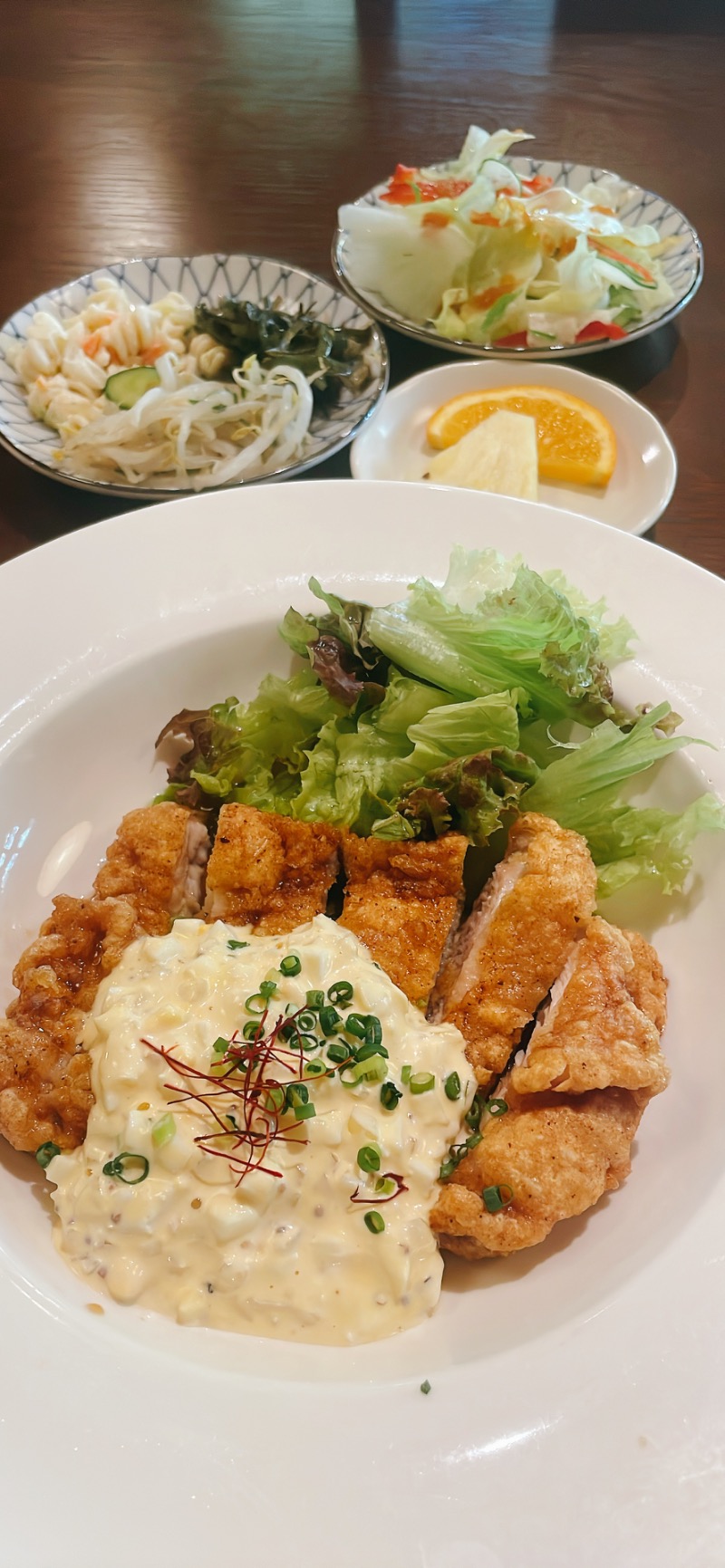 ランチはサラダバー付きでライスも小盛り〜大盛りまで選べました。もちろん大盛りで、いただきました♪