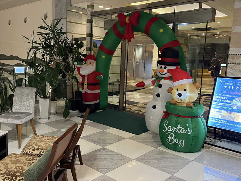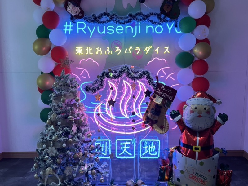 寝ころび椅子の上から眺める炭酸湯の上のイルミネーションが綺麗だった!