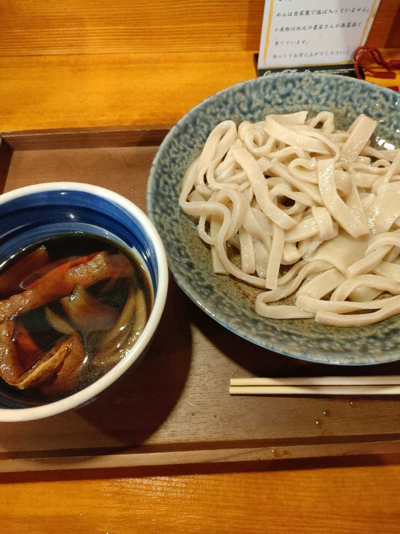 初めて食べたが、ほうとうのつけ麺のような感じで武蔵野うどんにも似ている。