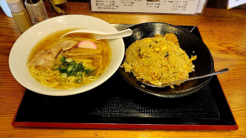 昼飯🤪 あっさり魚介系中華そばにパラパラの焼飯が最高です✨