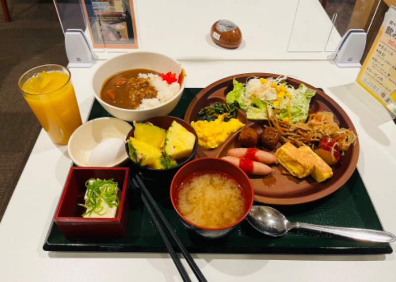 一言:カプセル💊宿泊💤→AM6:00頃(5:46頃から)常連の横分け👨🏻さんから並んでました(たぶんこっちも気付かれてます👀知らんけど) No.1👍10人位並んだ列のあと落ち着いたのでAM6:05位頃朝食バイキングチャンス🍛🥗🍠🌭🥚🍍)から朝食バイキング→AM6:40頃から朝ウナ→フィンランドサウナ7分×1セット🔥🪣🚿💦🪑→カプセル💊仮眠→AM7:40頃からメインサウナ5分×1セット🔥💦🪑気持ち良かったととのいました。😊→AM8:10頃OUT