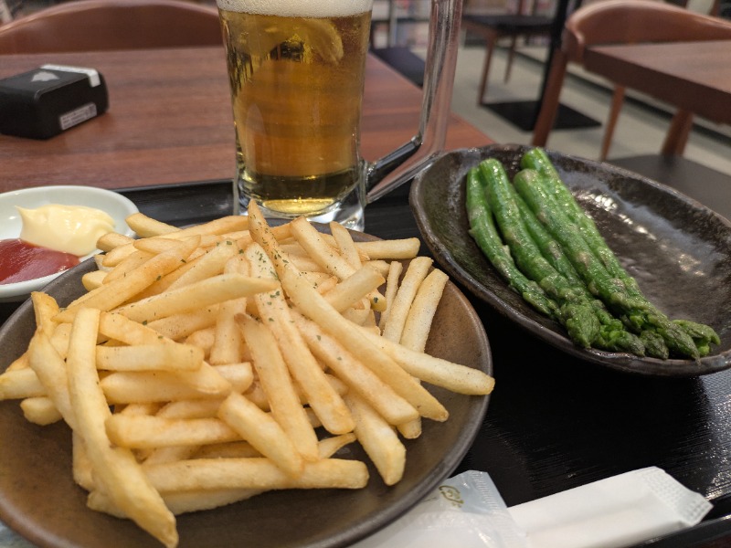 金曜日夕方、仕事が終わって速攻でサウナに飛び込みます。所沢駅前徒歩15秒のバーデンガーデン。よし、今日は空いているぞ🎵😄。ケロ→檜→ケロ→ケロ🐸の4セット。なかなか汗💦出ないな。12℃の冷たい水風呂は短めにして、小さなベランダで外気浴。椅子に座り段差の上に足を投げ出すと、冷たい雨☔がチラチラ足元に掛かります。夜になって降ってきたね。雨が止むまで階下のレストランでゆっくりするとします。