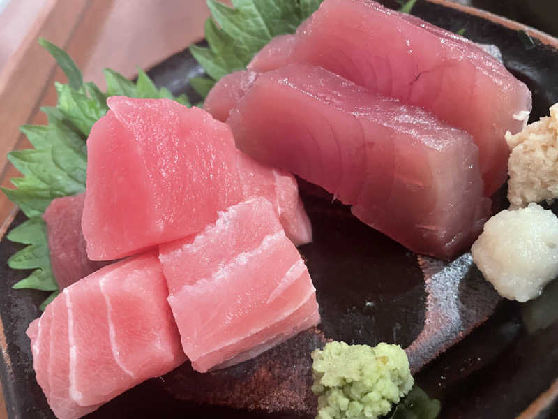 定番マグロぶつ&釣りカツオ、重ね、牛肉と切り干ししぐれ煮、キス天、なす天、ごぼう素揚げ、長いも素揚げ、にんにく素揚げ、アジ開き、〆に富士高原鶏チキン南蛮😋たっぷり美味しく頂きました🥰