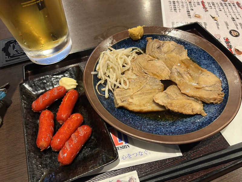 笹塚チャーシューと赤ウインナー(これもサ道に影響された)を食べながらビール&メガハイボール。最高すぎました。心から楽しかったです、聖地。