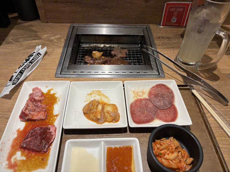タン、カルビ、ハラミ、ホルモン、キムチ、レモンサワー、ユッケジャンスープ