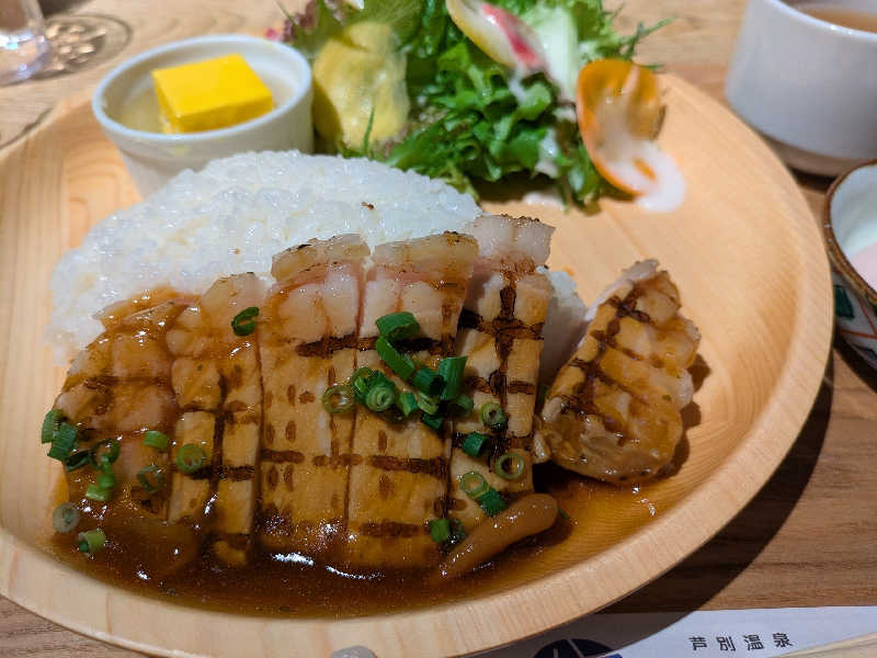 サウナ飯は、ガーリックポークのプレートをいただきました。明朝も朝ウナを楽しみます。