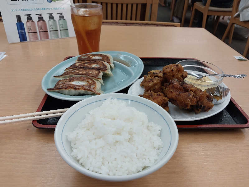 朝から何も食べてないので、お腹ペコペコ。11時に食事処に行くのに、お風呂だけにしようと洗体してラッコ薬湯に入ったけど、アウフで座る場所を確認するためと自分に言い訳して1セット。外気浴後に鉄輪の湯に入ってから食事処に行くと人がいっぱい💦 辛うじて座れた。スタッフさん少なくて注文も提供も少し時間がかかったけど、12時には完食。