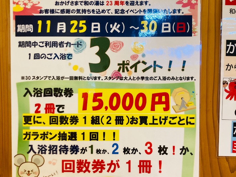 ちなみに和の湯もついに元日はお休み、施設ができて初めてだって