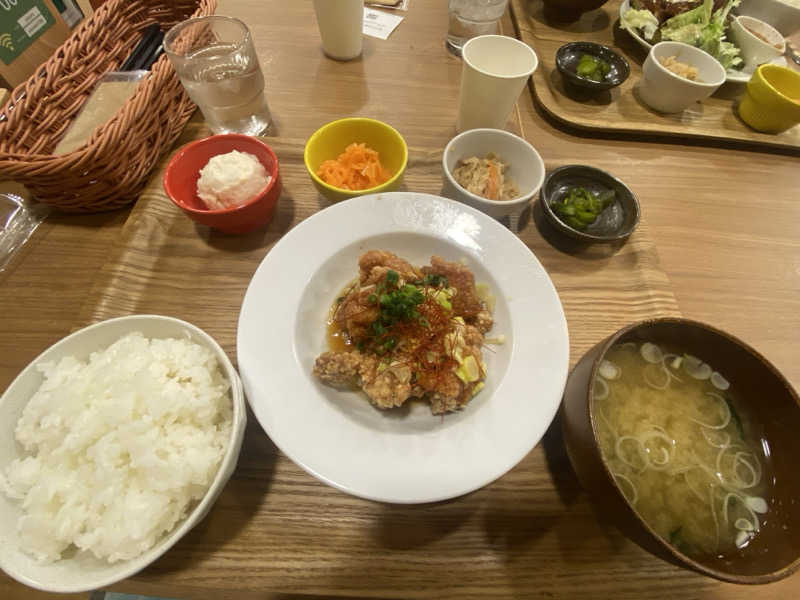 小鉢からお味噌、メインの油淋鶏全て美味しかったです🤤