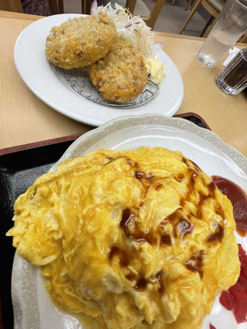 当直明けからの息子の⚽️試合見てからのAKC♨️ とろとろオムライスにコロッケでいつもの腹パン😵 からの🈂️アツアツ🔥じゅ〜 じょうろロウリュはやっぱりアツアツ🔥でますますじゅじゅ〜🔥 からのひんやり外気浴がきもてぃ😵💫 そして帰り渋滞でちーん😭