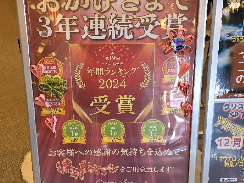 眺望だけが魅力のところかと思ったら、サウナは清潔で熱く、何より黙浴が徹底!小声もダメ、と書かれた板が吊るされていました笑