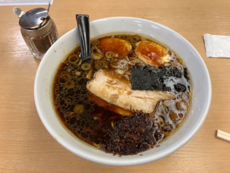 一度上がって、漫画読んで、リクライニングでウトウトし、ハッと起きて食堂へ。百年醤油ラーメンとカレー唐揚げを食べ、またリクライニングで漫画を読んで休憩。