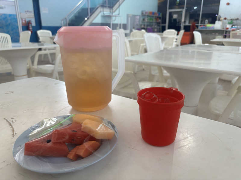 これこそバンコクサ活の白眉。体育館のように広いエリアにプールテーブルが並び、そのひとつを自分の場所に決めれば、冷えたお茶のポットと果物が置かれます。ここでゆったりととのえる寸法です。