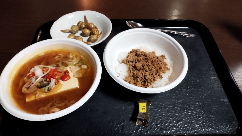 一度着替えて、受付でスンドゥブ、くわいを購入。19時55分からサウナ食堂にて井上皇帝、赤い壺の店長のトークショー、はるちゃん、宮川はなこさん、スローリュ小林さんのソーラン節披露、OFR48ライブ。
