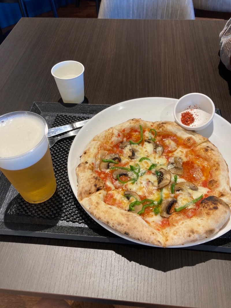 しっかりサウナ楽しんでこの前食べれなかったピザリベンジ!昼間っからビールもいっちゃいました!美味い!